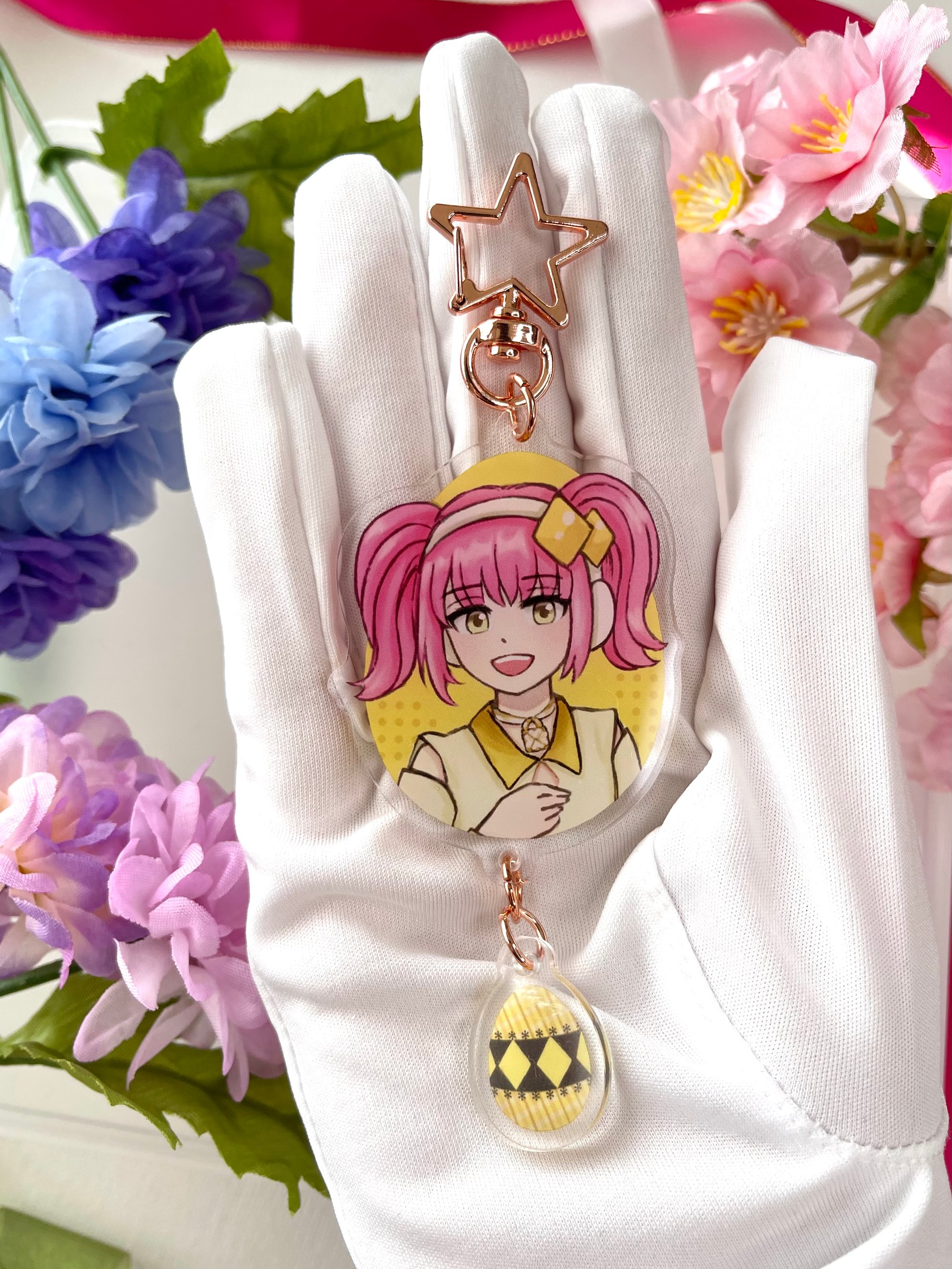 - 2 inch acrylic charms with 1'' egg charm connector